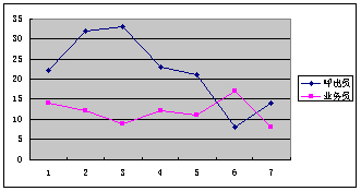 第五:考核指標(biāo)及獎勵機制的建立:呼出人員必須有相應(yīng)的考核辦法及獎勵機制,這從表1我們可以清楚地看到,呼出員的業(yè)績還不是很穩(wěn)定,有下降趨勢,而且幅度較大,這是由于在試運行期間沒有建立相應(yīng)的考核指標(biāo)及獎勵機制造成的,而有相應(yīng)機制的業(yè)務(wù)員的業(yè)績相對要穩(wěn)定得多。當(dāng)然富爾已經(jīng)意識到這個問題了,并采取了相應(yīng)的措施,目前2個呼出人員每人每天均穩(wěn)定在1萬元左右,說明采取的措施得力。