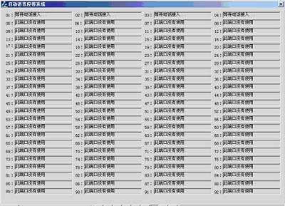 | 硬件配置 | 1、自動語音應答系統(tǒng): PC機或工控機(PIII800 CPU/256M內(nèi)存/40G硬盤/)Dialogic模擬語音傳真卡(VFX/40ESC plus) Dialogic 座席卡(MSI/80SC) 2、人工座席系統(tǒng):聯(lián)想中高端商用電腦 3、數(shù)據(jù)庫系統(tǒng):聯(lián)想萬全工作組級和部門級服務器 |