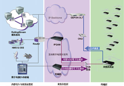 圖1 奔流RollingStream廣電互動數(shù)字電視解決方案系統(tǒng)架構