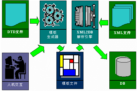 但是在很多場合下,比如用戶信息的輸入以及數(shù)據(jù)存儲還必須依賴于數(shù)據(jù)庫來完成。也就是需要建立XML和數(shù)據(jù)庫之間的雙向轉(zhuǎn)換,因此還必須提供從XML到數(shù)據(jù)庫的轉(zhuǎn)換工具。InfOnCall的XML2DB產(chǎn)品就是穎科公司為滿足該需求而開發(fā)的最新產(chǎn)品。InfOnCall的XML2DB產(chǎn)品能夠?qū)ML文檔中的層次結(jié)構(gòu)數(shù)據(jù)和數(shù)據(jù)庫之間建立相互的映射關系,并且通過該映射關系將實際的XML文檔數(shù)據(jù)導入到目標數(shù)據(jù)庫中。