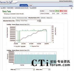Hammer On-Call IVR測試使用各種各樣的主叫場景模擬真實世界用戶交互。通過改變呼叫量和呼叫場景的混合,Empirix測試專家可以生成指向IVR的模擬真實世界的呼叫流量。此外,在測試中,不同的呼叫測試點上可以使用不同的呼叫率。在測試過程中經(jīng)常會用到三種基本呼叫模型及其變體;緶y試是使用一個恒定的低呼叫率檢驗被測環(huán)境是否已準備好接受呼叫;增量測試是使用一個固定增量穩(wěn)步增加呼叫量一直到達峰值呼叫量,然后,增加呼叫量直至超過期望值,檢驗系統(tǒng)在峰值時段內(nèi)是否有額外容量;最后,‘浸透’測試是在指定的時段內(nèi)使用一個恒定的高呼叫率檢驗系統(tǒng)穩(wěn)定性。