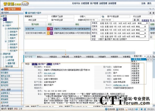 管理好客戶,做好客戶資料的詳細(xì)管理;管理企業(yè)各部門與客戶交往的所有日程活動。讓查閱者一目了然。并可以對客戶進(jìn)行精準(zhǔn)營銷,如群發(fā)短信、群發(fā)傳真、群發(fā)郵件等。
