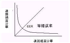 這些錯(cuò)誤和兩種不同的用戶群有關(guān)。特別是,比如,0.2%的誤接納率,并不意味著0.2%的呼叫者能闖入系統(tǒng),而是0.2%的冒名頂替者企圖闖入。這比例往往只是呼叫者總數(shù)的一個(gè)零頭。安全性和方便性須得到折衷平衡。當(dāng)誤接納率接近零時(shí),誤拒絕率則上升,反之亦然。曲線上誤接受和誤拒絕率相等的點(diǎn)叫等錯(cuò)率(ERR)。