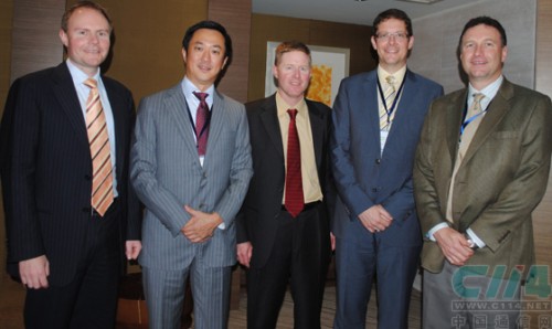 從左到右依次為:亞太區(qū)高級副總裁Jason Stirling、大中華區(qū)總經(jīng)理鄭裕慶、專業(yè)服務(wù)部副總裁Brett Phaneuf、企業(yè)產(chǎn)品副總裁Daniel S Fauldner、亞太區(qū)銷售工程師高級主管Stuart Sharpe