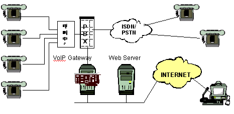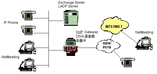 上。當(dāng)用戶點(diǎn)擊這一按扭時(shí),VoIP的應(yīng)用程序,比如NetMeeting,將自動(dòng)地在他們的計(jì)算機(jī)中啟動(dòng)。這個(gè)應(yīng)用程序?qū)⒋蜷_同DIVA VoIP 網(wǎng)關(guān)服務(wù)器的連接,然后再由網(wǎng)關(guān)連接到