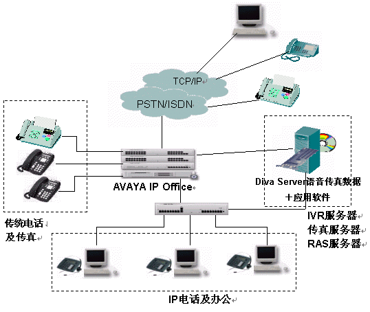 針對(duì)現(xiàn)代企業(yè)辦公通信的特點(diǎn)和要求,Avaya與Eicon經(jīng)過嚴(yán)格的產(chǎn)品互操作測試,及應(yīng)用調(diào)試共同推出了企業(yè)一體化辦公平臺(tái)解決方案,該解決方案整合了兩家公司的交換機(jī)、語音傳真板卡的各自優(yōu)勢,既可以應(yīng)用于傳統(tǒng)的網(wǎng)絡(luò)環(huán)境,又能應(yīng)用于純IP的通信環(huán)境,將不同的應(yīng)用技術(shù)和網(wǎng)絡(luò)結(jié)合起來,做到真正的辦公一體化。