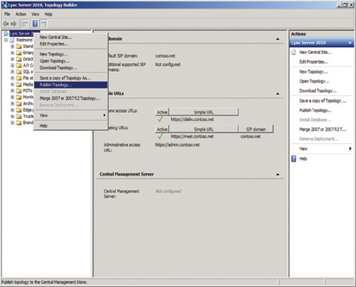 感到滿意后,可使用拓?fù)渖善鱽?lái)驗(yàn)證拓?fù)洹H绻鳛橛行負(fù)渫ㄟ^(guò)驗(yàn)證,則可以發(fā)布。發(fā)布拓?fù)鋾r(shí),Lync Server 會(huì)將拓?fù)浯嫒胫醒牍芾泶鎯?chǔ)。如果尚未創(chuàng)建中央管理存儲(chǔ),Lync 會(huì)在您提供有效拓?fù)洳?zhǔn)備發(fā)布拓?fù)鋾r(shí)創(chuàng)建中央管理存儲(chǔ)。在所處環(huán)境的各臺(tái)服務(wù)器上安裝 Lync Server 時(shí),服務(wù)器會(huì)從中央管理存儲(chǔ)讀取拓?fù)洌惭b自身以配合其在您的部署中的角色。