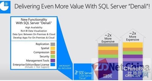 他還透露,Satya Nadella表示,Windows Server平臺超過全球服務器市場的平均增速,全球X86服務器市場最近5年的出貨量增長年均只有2%,但Windows Server的授權年均增長達到5%,其中System Center達到了20%。在數(shù)據(jù)平臺方面,微軟2007-2011財年的SQL Server新增授權年均增長近10%,在BI方面的增長達到市場平均增速的兩倍,并在雪弗龍、Softbank等大型用戶得到了成功應用。