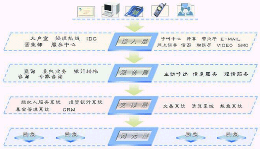 證券客戶服務(wù)系統(tǒng)面向用戶提供電話、傳真、網(wǎng)絡(luò)等方式的咨詢、查詢、委托、銀行轉(zhuǎn)帳、自動(dòng)業(yè)務(wù)等業(yè)務(wù)功能。系統(tǒng)以提供“個(gè)性化、社會(huì)化、信息化”服務(wù)為重要特征,具有“滿足未來業(yè)務(wù)發(fā)展需要”、“滿足實(shí)時(shí)處理”的能力。系統(tǒng)在設(shè)計(jì)、實(shí)現(xiàn)上,以具有先進(jìn)技術(shù)和高穩(wěn)定性的呼叫中心平臺(tái)為基礎(chǔ),竭力為證券業(yè)務(wù)運(yùn)營(yíng)商建立一個(gè)強(qiáng)大、開放、靈活的業(yè)務(wù)服務(wù)系統(tǒng),更好地滿足證券用戶日益增長(zhǎng)的各種新的服務(wù)需求,保持證券企業(yè)在市場(chǎng)競(jìng)爭(zhēng)中的優(yōu)勢(shì)。