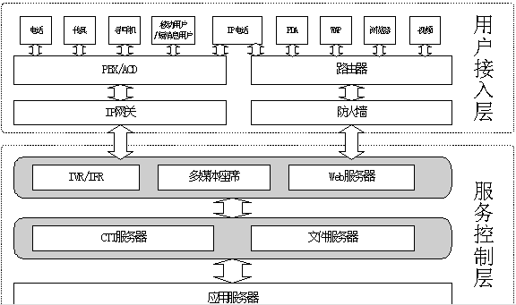 即多媒體客服中心的接入端,包括IVR流程、人工坐席等,它是用戶進(jìn)入多媒體客服中心客服系統(tǒng)的入口,它將直接面對(duì)用戶并收集各種信息。支持電話、傳真、電子郵件、WEB訪問、WAP、PDA、IP電話、網(wǎng)絡(luò)電話、視頻電話等多種方式接入。