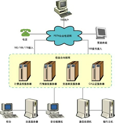 2) 與169多媒體信息平臺(tái)通過網(wǎng)關(guān)互聯(lián),最大限度實(shí)現(xiàn)數(shù)據(jù)共享,并且證券公司營(yíng)業(yè)部可通過一條DDN完成電話委托和網(wǎng)上交易的業(yè)務(wù),大大降低證券公司日常運(yùn)營(yíng)費(fèi)用,同時(shí)能最大限度地吸引異地、鄉(xiāng)鎮(zhèn)用戶。