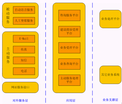 該系統(tǒng)提供5*8小時(shí)人工服務(wù)和7*24小時(shí)自動(dòng)服務(wù),提供政策法規(guī)咨詢(xún)、辦事指南、信息查詢(xún)、受理投訴舉報(bào)、進(jìn)行社會(huì)調(diào)查五大功能;預(yù)留電話(huà)職介和受理勞動(dòng)保障相關(guān)電話(huà)業(yè)務(wù)兩大功能,同時(shí)提供輔助功能,包括:資料庫(kù)建設(shè),信息定制與發(fā)布,內(nèi)部管理等。