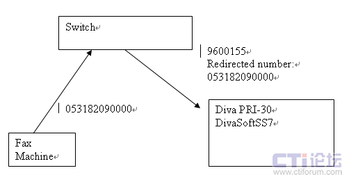 Dialogic Diva SS7傳真解決方案簡(jiǎn)介:以往的傳真運(yùn)營(yíng)在處理接收傳真的時(shí)候都是通過(guò)提供一個(gè)接入平臺(tái)號(hào)(例如山東網(wǎng)通的商務(wù)新動(dòng)力為9600155),然后通過(guò)語(yǔ)音提示輸入傳真信箱號(hào)。這樣做的缺點(diǎn)在于對(duì)于所有的客戶來(lái)說(shuō)接入號(hào)碼都是統(tǒng)一的,不能滿足個(gè)性化需求。有一些客戶不想失去原有的傳真機(jī)號(hào)碼。希望網(wǎng)絡(luò)傳真系統(tǒng)能夠綁定他們?cè)瓉?lái)的傳真?zhèn)髡鏅C(jī)號(hào)碼。例如某客戶原有的號(hào)碼是053182090000,通過(guò)號(hào)碼綁定,當(dāng)其他用戶向他發(fā)傳真的時(shí)候,撥打的號(hào)碼是053182090000,但是此呼叫會(huì)被呼轉(zhuǎn)到9600155。傳真平臺(tái)根據(jù)原始被叫號(hào)來(lái)接收傳真。原有的基于PRI的解決方案不能解決原始被叫號(hào)的傳送問(wèn)題,所以必須借助SS7網(wǎng)絡(luò)才能實(shí)現(xiàn)?蛻魮艽053182090000,呼叫被呼轉(zhuǎn)到9600155.在Redirected