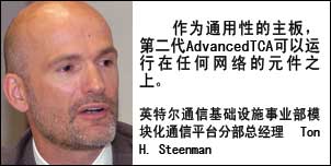 “目前我們是業(yè)內(nèi)第一家推出第二代AdvancedTCA產(chǎn)品的廠家”,英特爾通信基礎設施事業(yè)部模塊化通信平臺分部(MCPD)總經(jīng)理Ton