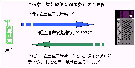 2004年4月15日和4月20日,擁有完全自主知識(shí)產(chǎn)權(quán)的語(yǔ)音與語(yǔ)言技術(shù)開發(fā)商和技術(shù)提供商北京得意音通技術(shù)有限責(zé)任公司(得意公司),在國(guó)際上率先把中文自然語(yǔ)言理解技術(shù)應(yīng)用在中國(guó)聯(lián)通和中國(guó)移動(dòng)短信服務(wù)平臺(tái)上,結(jié)合《精品購(gòu)物指南》報(bào)社權(quán)威、全面的信息資源,開通了北京地區(qū)餐飲領(lǐng)域智能短信查詢服務(wù)(簡(jiǎn)稱智能短信),并將進(jìn)一步支持互聯(lián)網(wǎng)平臺(tái)和WAP平臺(tái),陸續(xù)開通更豐富和更實(shí)用的智能信息服務(wù)。