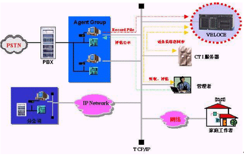 現(xiàn)在國內(nèi)市場上的絕大部分錄音設備是基于語音板卡的,而VELOCE 是通過小巧的USB錄音模塊連接到話務員PC上,利用數(shù)字語音壓縮技術和加密技術把通話內(nèi)容存儲到話務員PC, 并通過網(wǎng)絡傳輸?shù)椒⻊掌鳎?它是通過硬/軟件的錄音方式和網(wǎng)絡傳輸方式的結(jié)合體。