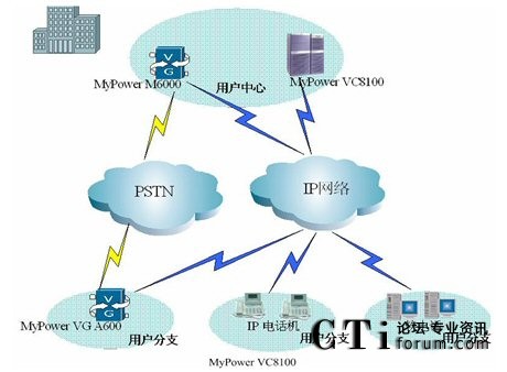 在用戶中心部署MyPower VC8100 IP通信服務器,同時部署MyPower M6000媒體網(wǎng)關,在用戶分支機構(gòu)部署邁普公司小型媒體網(wǎng)關、IP電話機及軟電話,構(gòu)建以SIP協(xié)議為基礎的高擴展性VOIP協(xié)同通信平臺。