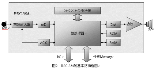 由美國Sensory Integrated Circuit公司開發(fā),2000年開始生產(chǎn),是一顆為消費(fèi)類電子產(chǎn)品應(yīng)用的低價(jià)位的語音識(shí)別專用芯片,其結(jié)構(gòu)圖如圖2所示。