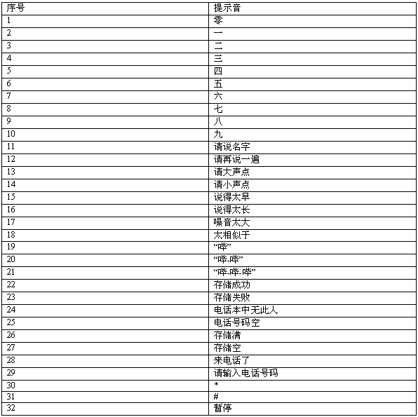 1-人名訓練 2-人名識別 3-語音電話本 4-語音合成 5-控制功能 6-調試 7-DTMF 8-音樂 9-實時錄音/回放 10-來電播報