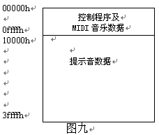 地址分配如下:00000h-0ffffh用于存放控制程序及MIDI音樂數據,10000-3ffffh存放提示音數據。