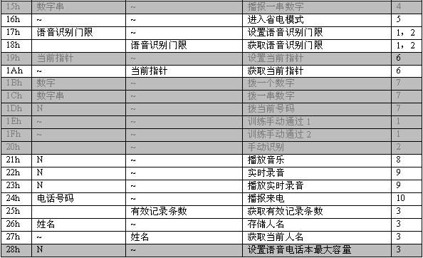 命令描述: 回放當前指針所指記錄對應的人名錄音。如果當前指針為0或指向某一空記錄,則返回12h.該命令的執(zhí)行可被MCPU中斷.