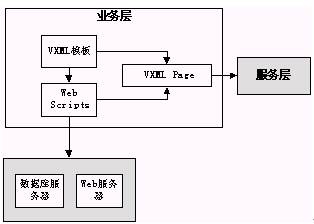Scripts(ASP,JSP等)語言訪問外部系統(tǒng)以獲取數(shù)據(jù),把這些數(shù)據(jù)合并到VXML的模板中,形成完整的業(yè)務流程。服務層獲得該業(yè)務流程后,就可以按照該流程和用戶進行交互。