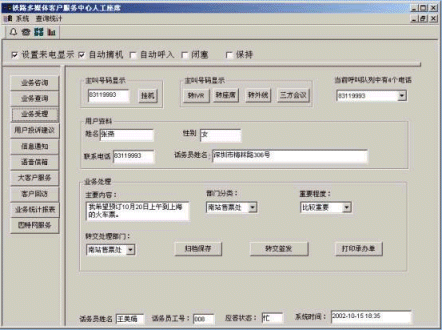因此,建設(shè)鐵路客戶服務(wù)中心系統(tǒng)同時(shí)也是體現(xiàn)和提高鐵路部門或火車站“一把手”業(yè)績(jī)的一條捷徑。