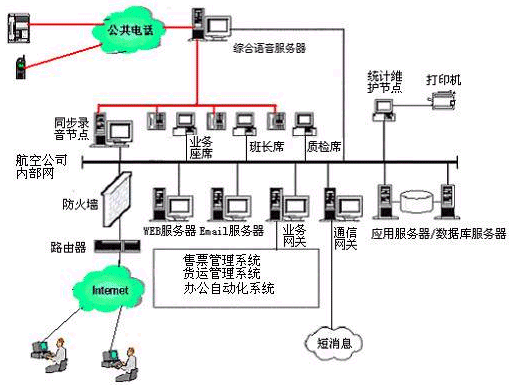 航空公司多媒體客戶服務(wù)中心的網(wǎng)絡(luò)拓?fù)浣Y(jié)構(gòu)圖