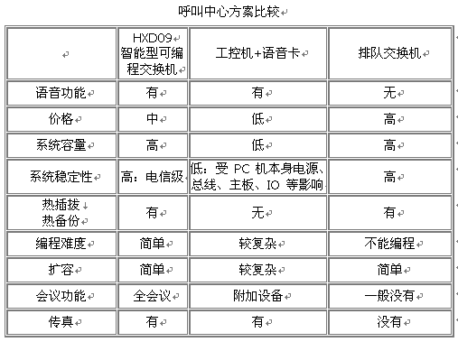 我們知道,呼叫中心的硬件實現(xiàn)方案/語音接入方式傳統(tǒng)的有兩種:工控機+語音卡,排隊交換機。對比如下: