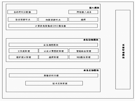 系統(tǒng)響應時間:采用中國1號信令時,在用戶撥完最后一個號碼后聽到第一句語音提示之前的間隔時間不超過2s,采用7號信令時則不超過1s,從占用座席到屏幕顯示的接續(xù)時間<0.5s。