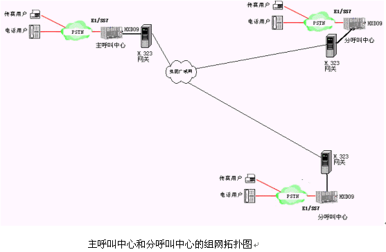 主呼叫中心和多個分呼叫中心均采用采用一體化的可編程智能語音交換機的呼叫中心。