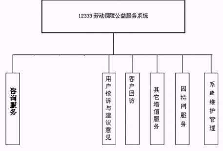 本12333勞動(dòng)保障公益服務(wù)系統(tǒng)業(yè)務(wù)功能結(jié)構(gòu)如下圖所示: