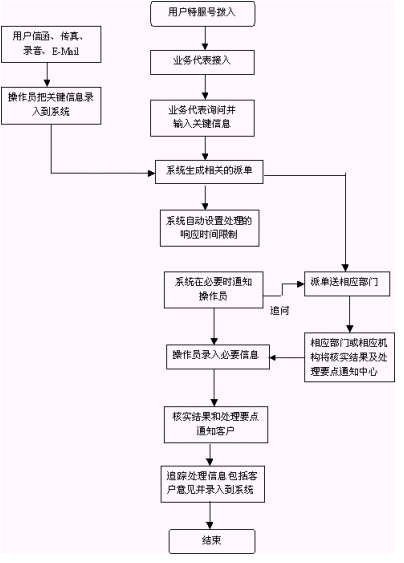 投訴舉報(bào)的受理可以自動(dòng)完成,提示用戶輸入投訴的部門(mén)和工作人員的代號(hào)。也可以人工完成,直接將投訴對(duì)象告訴話務(wù)員。