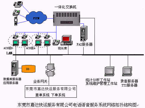 東莞市嘉達快運服務有限公司電話語音服務系統(tǒng)一期工程和二期工程采用基于在呼叫中心領(lǐng)域獲得廣泛應用的一體化交換機的呼叫中心建設(shè)方案,具有優(yōu)異的不斷升級和擴展性能,分別于2003年12月20日和2004年4月17日順利上線投入運行,大幅提高了老客戶的滿意度和忠誠度,為該企業(yè)創(chuàng)造了很好的經(jīng)濟效益和社會效益,大大的提高客戶服務質(zhì)量和響應速度。