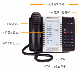 IP 桌面電話設(shè)備外,還備有高級IP應(yīng)用,如漫游辦公,遠程辦公、快捷方便的電話會議、不受地域限制的分布式呼叫中心(Call