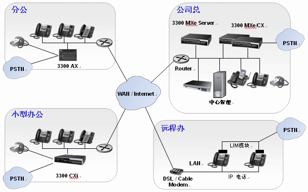 3300 ICP 系列提供一個具有高擴展性、彈性、功能強大的呼叫控制單元,在充分利用IP優(yōu)勢的同時能夠滿足基于傳統(tǒng)時分復(fù)用(TDM)技術(shù)的設(shè)備與公共電話網(wǎng)(PSTN)連接。