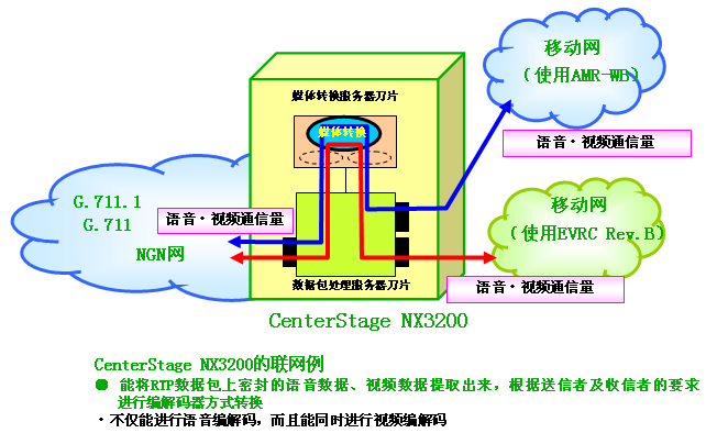 NX3200(以下簡稱「NX3200」)」上,內置了行業(yè)首例運營商級寬帶編解碼轉換功能。本裝置迅速對應了ITU-T(注2)制定的國際標準G.711.1(注3)等寬帶編解碼器標準,在運用移動網(wǎng)、固定網(wǎng)的各種語音編解碼器及視頻編解碼器之間,能同時進行大容量通信。本產品即日起開始銷往市場。