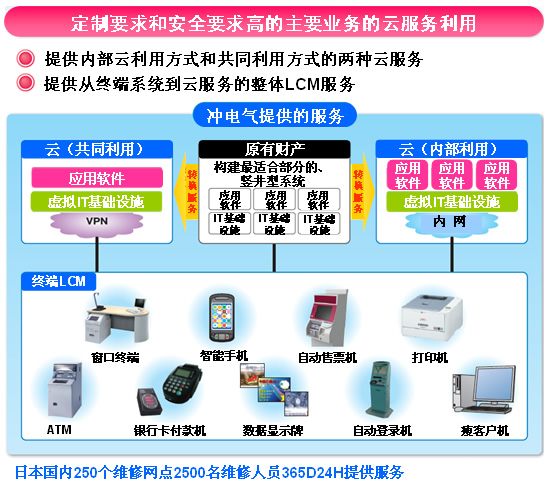 CTI論壇(ctiforum)12月9日消息(記者 楊佳林): 沖電氣開始銷售云計算服務(wù)(簡稱云服務(wù))—“EXaaS™”,以滿足客戶在任意時間以任意方式使用的需求!癊XaaS™”是整套的IT周期管理云服務(wù),包括系統(tǒng)引進咨詢、開發(fā)、采購和構(gòu)筑、運營支持。該服務(wù)超越了以往的云服務(wù),其服務(wù)范圍涵蓋了客戶端的終端機以及客戶網(wǎng)絡(luò)的所有部分,實現(xiàn)了客戶IT投資成本最優(yōu)化。