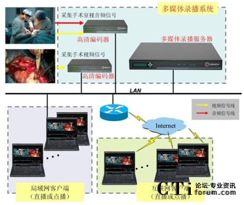 廣州醫(yī)學(xué)院附屬腫瘤醫(yī)院使用銳取高清手術(shù)示教系統(tǒng)用于日常手術(shù)示教。銳取高清手術(shù)示教系統(tǒng)采集手術(shù)室內(nèi)拍攝手術(shù)的高清攝像機(jī)信號(支持1080P、1080I、720P),將采集的信號編碼后錄制并實時網(wǎng)絡(luò)直播。通過銳取高清手術(shù)示教系統(tǒng),醫(yī)生、專家、學(xué)生不需要到手術(shù)現(xiàn)場,通過網(wǎng)絡(luò)就能觀看到手術(shù)的全程直播以及事后點播。