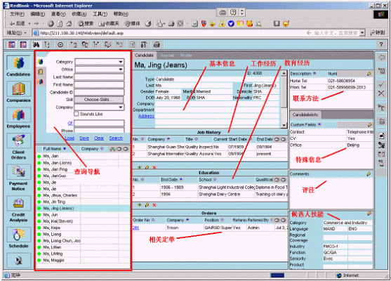 融博公司適應(yīng)市場(chǎng)需求,與著名的獵頭公司一起合作,結(jié)合CRM的理念和現(xiàn)有的軟件平臺(tái),開(kāi)發(fā)出了融博獵頭業(yè)務(wù)管理系統(tǒng)。該系統(tǒng)具有自己獨(dú)特的優(yōu)勢(shì),比如擁有中英文兩種版本;使用WEB方式、具有跨地域信息共享;人力資源信息專業(yè)規(guī)范、覆蓋全面;系統(tǒng)操作簡(jiǎn)單、功能強(qiáng)大;配置靈活、可擴(kuò)展性強(qiáng);復(fù)雜的業(yè)務(wù)關(guān)聯(lián)性;以及生成各種業(yè)務(wù)報(bào)告和業(yè)務(wù)報(bào)表等。該系統(tǒng)采用了模塊化的設(shè)計(jì)方案,可以根據(jù)用戶的使用權(quán)限和業(yè)務(wù)內(nèi)容,配置不同的業(yè)務(wù)模塊。該系統(tǒng)的功能模塊包括了候選人管理、客戶管理、雇員管理、定單管理、活動(dòng)管理、績(jī)效管理、系統(tǒng)管理和報(bào)表管理等。