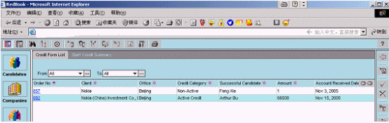 融博獵頭業(yè)務(wù)管理系統(tǒng)已經(jīng)被某著名的獵頭公司正式上線,該系統(tǒng)同時(shí)在北京、上海等五個(gè)分公司使用。根椐使用客戶反映,該系統(tǒng)功能強(qiáng)大、操作簡(jiǎn)單,基本覆蓋了獵頭業(yè)務(wù)的全部?jī)?nèi)容;各種業(yè)務(wù)流程規(guī)范、流暢;各類統(tǒng)計(jì)報(bào)表靈活、準(zhǔn)確;自動(dòng)生成簡(jiǎn)歷、客戶提交報(bào)告、催款通知、項(xiàng)目進(jìn)度報(bào)告,極大地提高了企業(yè)的工作效率。該系統(tǒng)與目前國(guó)際先進(jìn)的獵頭公司所使用的系統(tǒng)相比,處于領(lǐng)先的地位。