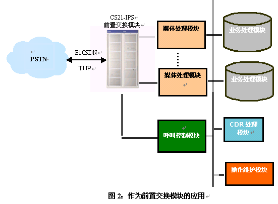 前置交換模塊:是一套可編程交換機(jī),提供E1和10/100M Ethernet接口,支持SS7、ISDN、TUP等信令 。具有大容量交換網(wǎng)絡(luò)、信號音、語音資源、會議電話功能。