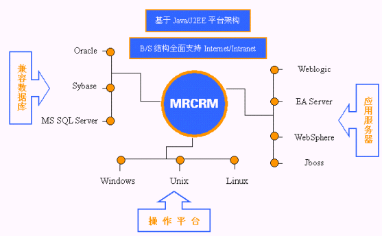 從技術(shù)角度講:MRCRM采用先進(jìn)的Java/J2EE平臺(tái)架構(gòu),具有良好的開放性、移植性和可擴(kuò)展性。采用獨(dú)有的XBridge框架,通過XML文檔完成數(shù)據(jù)交換;業(yè)務(wù)層與數(shù)據(jù)層、表現(xiàn)層分離,業(yè)務(wù)邏輯封裝在EJB中。其技術(shù)特點(diǎn)主要為: