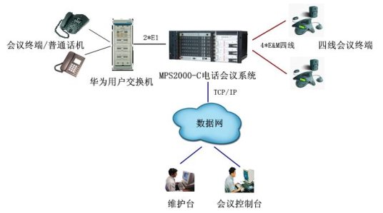 在接入上,通過(guò)2個(gè)數(shù)字中繼與華為大型用戶(hù)交換機(jī)互連,實(shí)現(xiàn)華為用戶(hù)交換機(jī)下的模擬用戶(hù)作為與會(huì)用戶(hù)的接入,也可通過(guò)華為交換機(jī)出局,實(shí)現(xiàn)PSTN網(wǎng)內(nèi)的用戶(hù)接入。