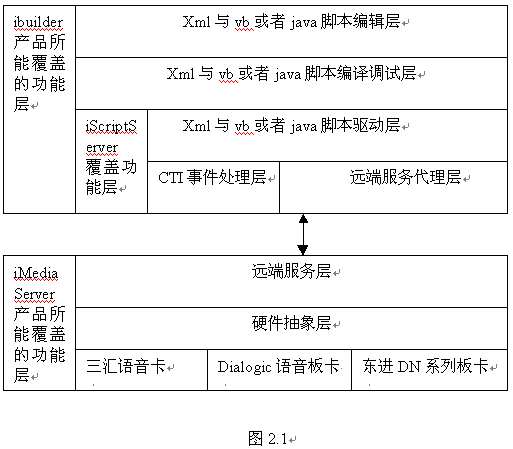 如圖2.1所述,ibuilder產(chǎn)品覆蓋了腳本編輯、編譯調(diào)試、腳本驅(qū)動(dòng)、遠(yuǎn)端服務(wù)代理的功能,占據(jù)了IVR業(yè)務(wù)系統(tǒng)重要的一部分。