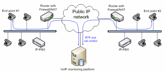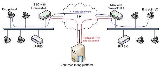 VoIP應用的質(zhì)量監(jiān)控分為主動式和被動式兩種實現(xiàn)方式。主動式的系統(tǒng)能產(chǎn)生呼叫,而被動式的系統(tǒng)只是監(jiān)測進行中的呼叫。兩種方法各有優(yōu)勢。VoIP監(jiān)控方案的架構取決于網(wǎng)絡Edge設備的類型和結(jié)構。有些大型企業(yè)采用的VoIP網(wǎng)絡配備了一種特殊設備,叫SBC(Session boarder controller),除了完成類似路由器的功能外,還能完成流量分配、數(shù)據(jù)/語音信號加密以及業(yè)務質(zhì)量控制等功能。此外,通過過濾和替換數(shù)據(jù)包內(nèi)的、與用戶有關的特定信息,SBC還能隱藏公司的網(wǎng)絡拓撲結(jié)構和用戶信息,不被外部的IP世界所知道。