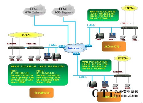 Phone或Softphone等)來注冊,在本范例中我們各使用了一臺SIP Phone及一臺筆記型計算機作為SIP分機。在SIP外線部分,臺北及上海的MOSA