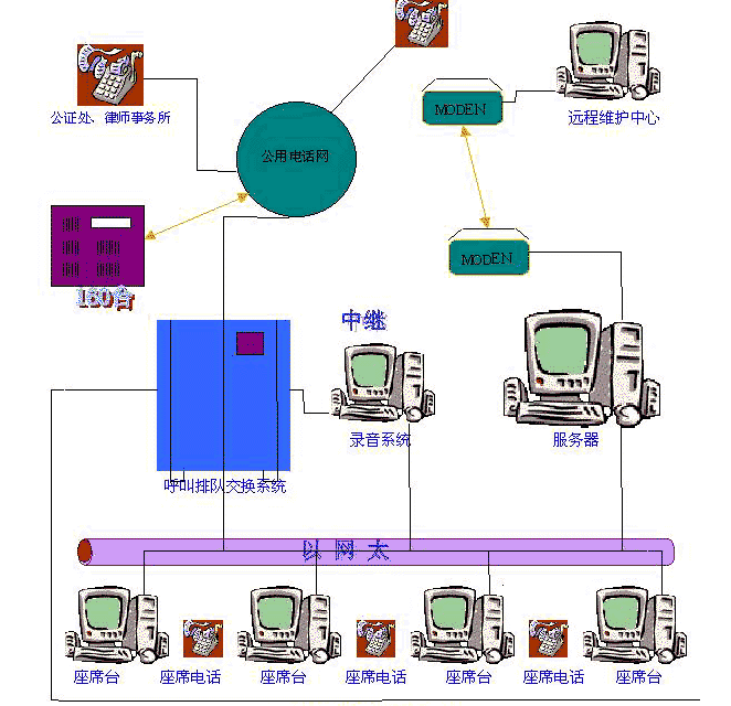 呼叫中心系統(tǒng)由用戶電話交換機、CTI服務器、IVR設(shè)備、應用數(shù)據(jù)庫服務器、人工座席客戶機和電話終端等硬件設(shè)備和應用軟件組成