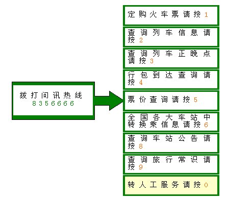 應(yīng)用訊飛語(yǔ)音技術(shù)的鄭州火車站電話問(wèn)訊系統(tǒng),不僅規(guī)模比原有系統(tǒng)擴(kuò)大一倍,而且服務(wù)內(nèi)容更加豐富,提供實(shí)時(shí)更新的信息,真正實(shí)現(xiàn)了對(duì)旅客的個(gè)性化服務(wù)。下圖所列即該自動(dòng)電話問(wèn)訊熱線主要功能: