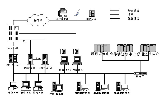 對于不同類型消息呼入、呼出的外圍系統(tǒng)設計遵循模塊化原則;系統(tǒng)內部消息流滿足格式統(tǒng)一、可操作性統(tǒng)一、開發(fā)接口統(tǒng)一等特點。在軟、硬件選型上,充分考慮系統(tǒng)的穩(wěn)定性、開放性、經(jīng)濟性,根據(jù)不同的系統(tǒng)規(guī)模進行詳細論證。